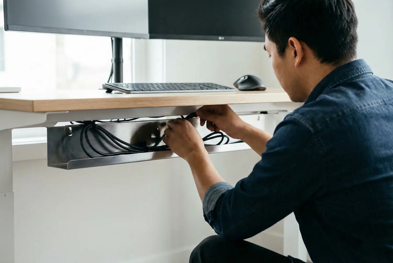 Kies voor kwalitatief goede kabels met een stevige mantel en maak gebruik van kabelgeleiders of kabelclips zodat kabels niet voortdurend bewegen of buigen op één punt. Vooral bij verstelbare bureaus of bureaustoelen met wielen kun je een kabelspiraal of flexibele kabelslang gebruiken, die kabels beschermt en slijtage voorkomt door bewegingen. Controleer daarnaast regelmatig je kabels op slijtage of schade en vervang ze indien nodig direct.